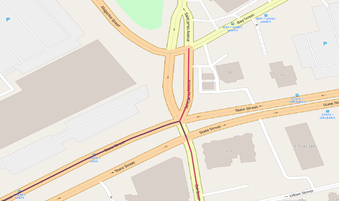Figure 2. Dangerous sections of the road shown on a regular map.